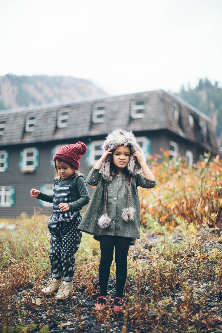 When scouting out the location for the Duchess and Lion winter collection, Liz and I wanted to find something that felt wintery (it was the end of Sept). We traveled high up Big Cottonwood Canyon, a canyon just near Salt Lake City, Utah. There are several ski resorts, cabin developments, etc and we hoped to find the "perfect" place. As fate would have it, we found it! An old ski lodge (still operating, during the ski season) with all of the vintage interior and exterior details we were hoping for (just didn't know it at the time!). When we stumbled across this lodge we just KNEW. It was perfect. Fast forward a few weeks, a chilly and foggy October morning set the perfect tone for our shoot.